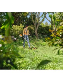 Desbrozadora de batería STIHL FSA 80 en un set con la batería de iones de litio STIHL AK 30 y el cargador estándar STIHL AL 101 correspondiente. Con su excelente rendimiento de corte, es una potente desbrozadora del sistema STIHL AK y te ofrece un apoyo óptimo para las tareas en tu jardín. Puedes cortar hierba o recortar los bordes del césped en zonas pequeñas de forma rápida y sencilla. El manillar ergonómico tipo bicicleta (mango de corte) hace que sea cómoda de usar. Puedes trabajar sin protección auditiva, incluso en zonas sensibles al ruido.
